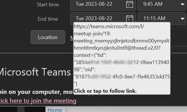 Doing a review on the link created for the meeting you can see there are 2 values: